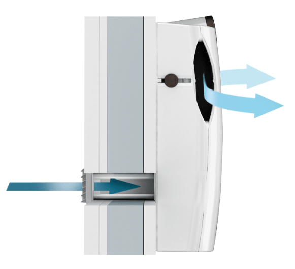Активный шумоизоляционный проветриватель AEROPAC в сочетании с шумоизолированными окнами превратит ваш дом в место покоя и отдыха — несмотря на уличное движение, шум от взлетающих самолетов или проходящих поездов.